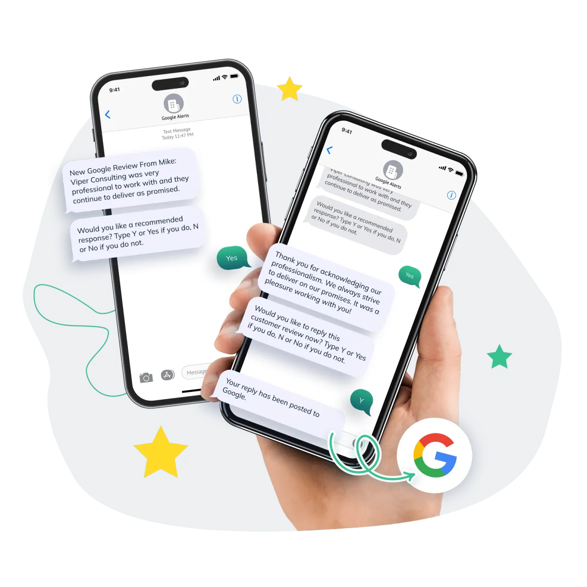 Receive SMS alerts the moment a new Google review is posted.