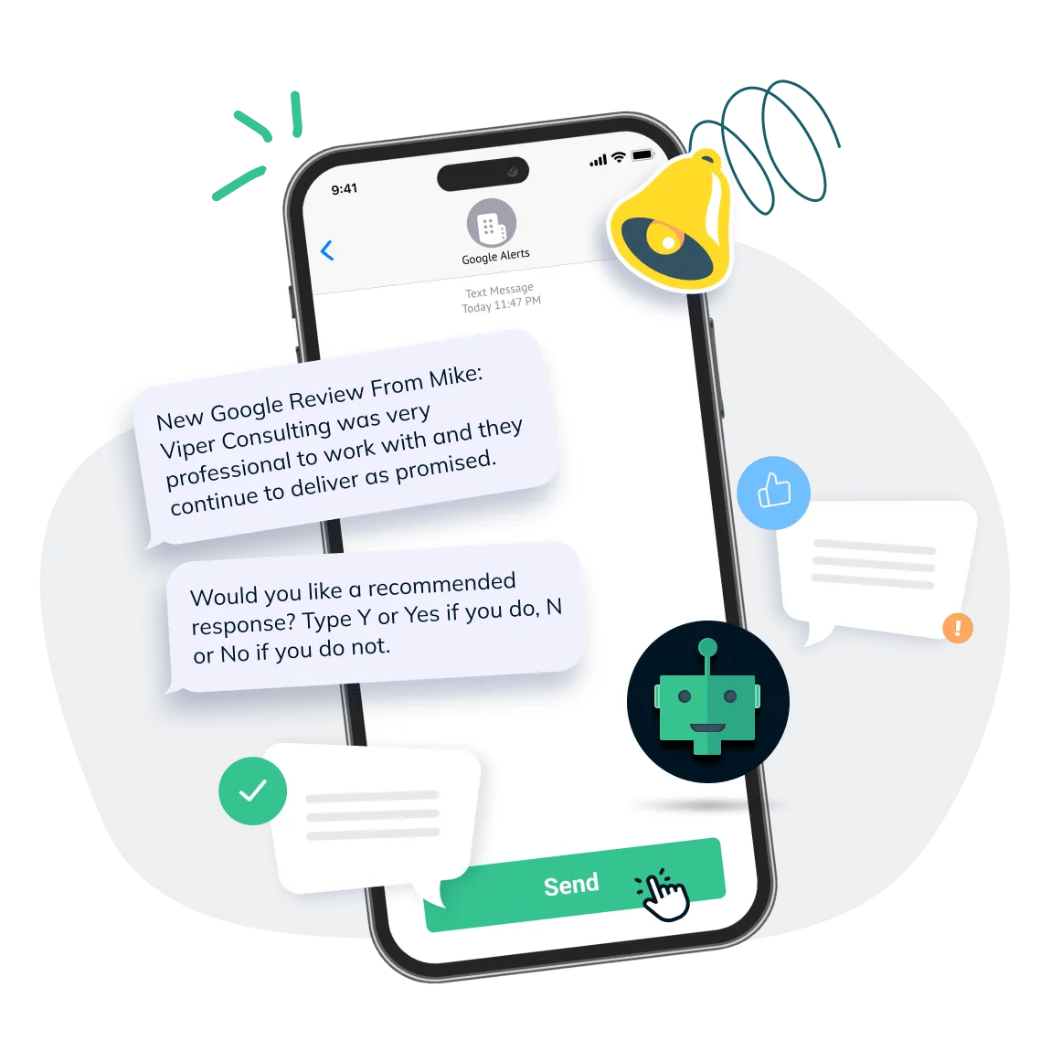 Manage and respond to reviews instantly via SMS. No logging into multiple platforms. No wasted admin time.
